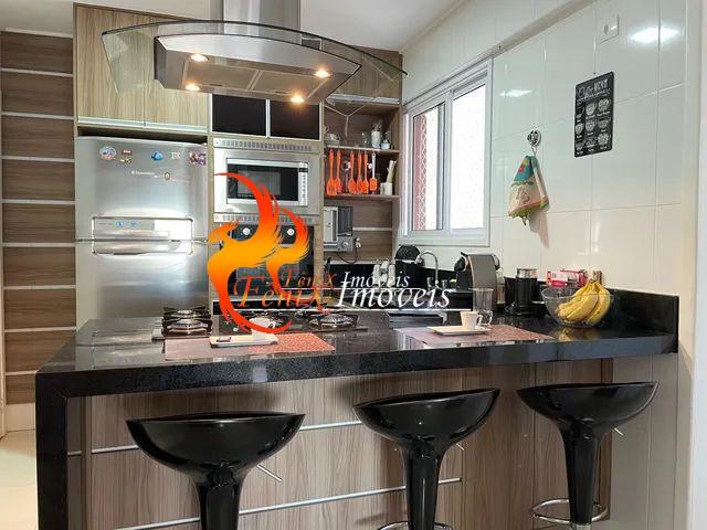 A cozinha planejada reflete praticidade e elegância, enquanto a área de serviço atende às necessidades do dia a dia. Com duas vagas de garagem, a praticidade se estende também ao estacionamento.