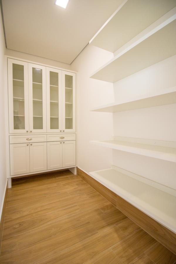 - Despensa ampla com armários planejados para organização.