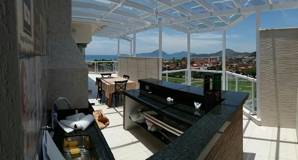 O destaque fica por conta do espaçoso espaço gourmet coberto, que oferece vistas deslumbrantes do mar e das montanhas, o cenário perfeito para reunir amigos e familiares em um ambiente acolhedor. Para momentos de relaxamento, o solárium privativo com ducha é um refúgio tranquilo onde você pode apreciar a paisagem em total privacidade.