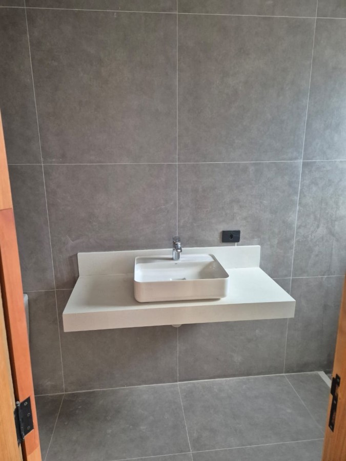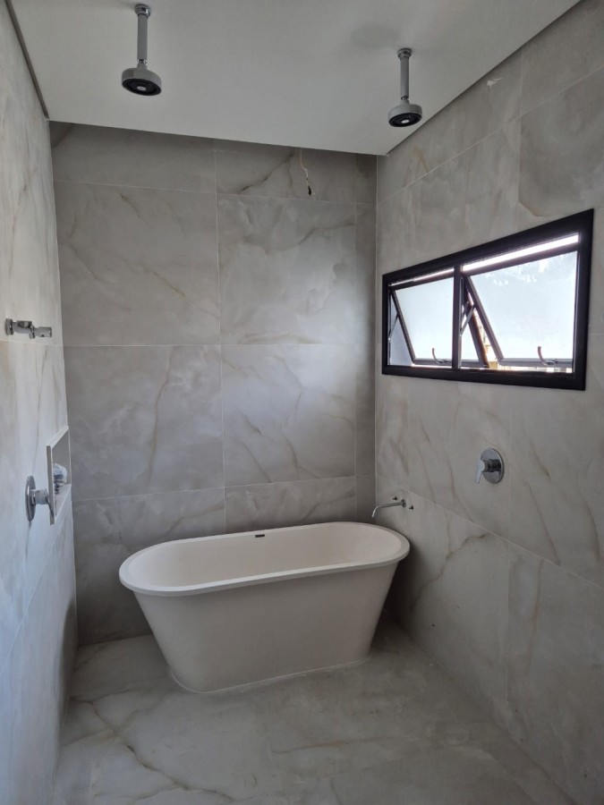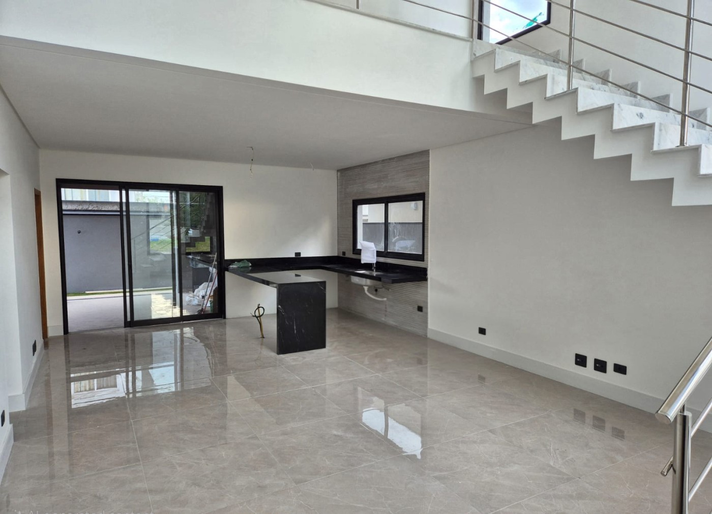 A planta é perfeitamente distribuída, com 4 suítes espaçosas, sendo 3 no pavimento superior e uma no térreo — ideal para home office ou acomodar hóspedes com privacidade. A suíte master conta com sacada privativa e uma deliciosa banheira de imersão, criando um ambiente perfeito para relaxar. A integração entre sala de estar, jantar e TV proporciona um espaço amplo, acolhedor e iluminado naturalmente, graças às claraboias no closet e no corredor superior. A cozinha está pronta para instalação de gás encanado, e todos os quartos possuem forro de gesso, elevando o padrão de acabamento. No piso térreo, o lavabo traz praticidade e elegância.