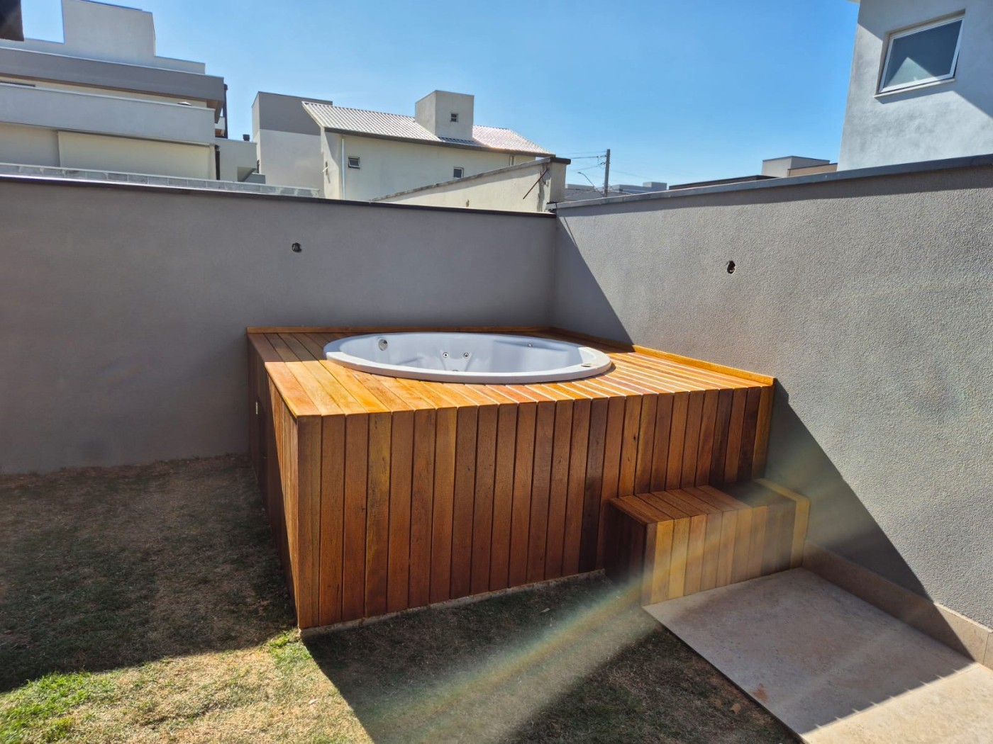 Para os momentos de lazer, a área gourmet com churrasqueira e banheiro externo é perfeita para reunir a família e os amigos. E para completar, um spa para 4 pessoas com deck de madeira oferece o cenário ideal para relaxar. O imóvel ainda conta com aquecimento solar, preparação para energia solar fotovoltaica, preparação para ar-condicionado nos quartos, garagem coberta para 2 carros, 2 hobby boxes e um impressionante pé direito duplo de até 6,90 metros, que garante uma incrível sensação de amplitude.