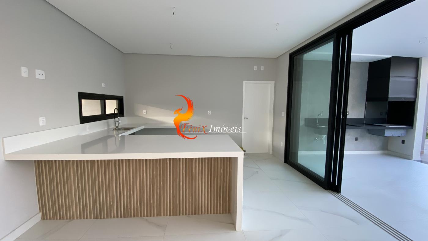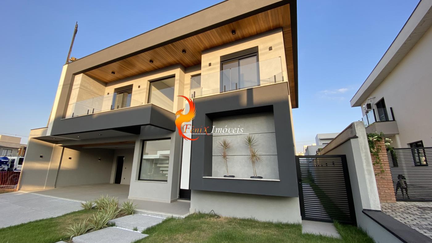 No pavimento térreo, o sobrado conta com garagem espaçosa para até 3 veículos, área de serviço funcional, despensas para armazenamento adicional, hobby box para organização de equipamentos, escritório com lavabo (facilmente adaptável para uma suíte adicional), sala de TV aconchegante, cozinha moderna com bancadas em quartzo, sala de jantar elegante e sala de estar com pé direito duplo e detalhes em boiserie, que conferem sofisticação ao ambiente. A área gourmet integrada está equipada com banheiro e oferece acesso direto à piscina com prainha, perfeita para momentos de lazer em família. Um amplo jardim complementa o espaço, ideal para relaxamento e atividades ao ar livre.