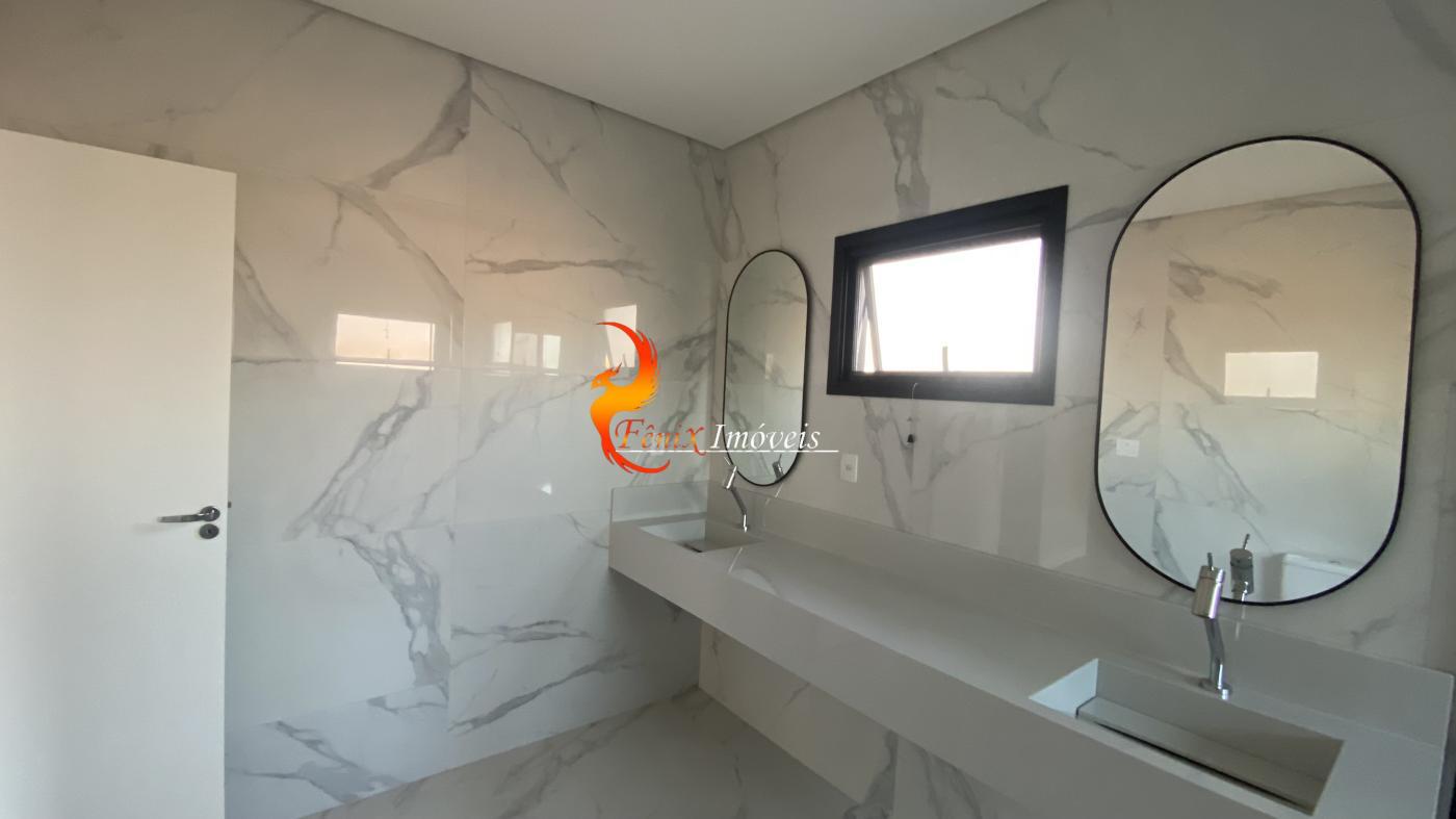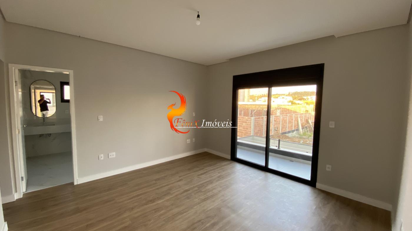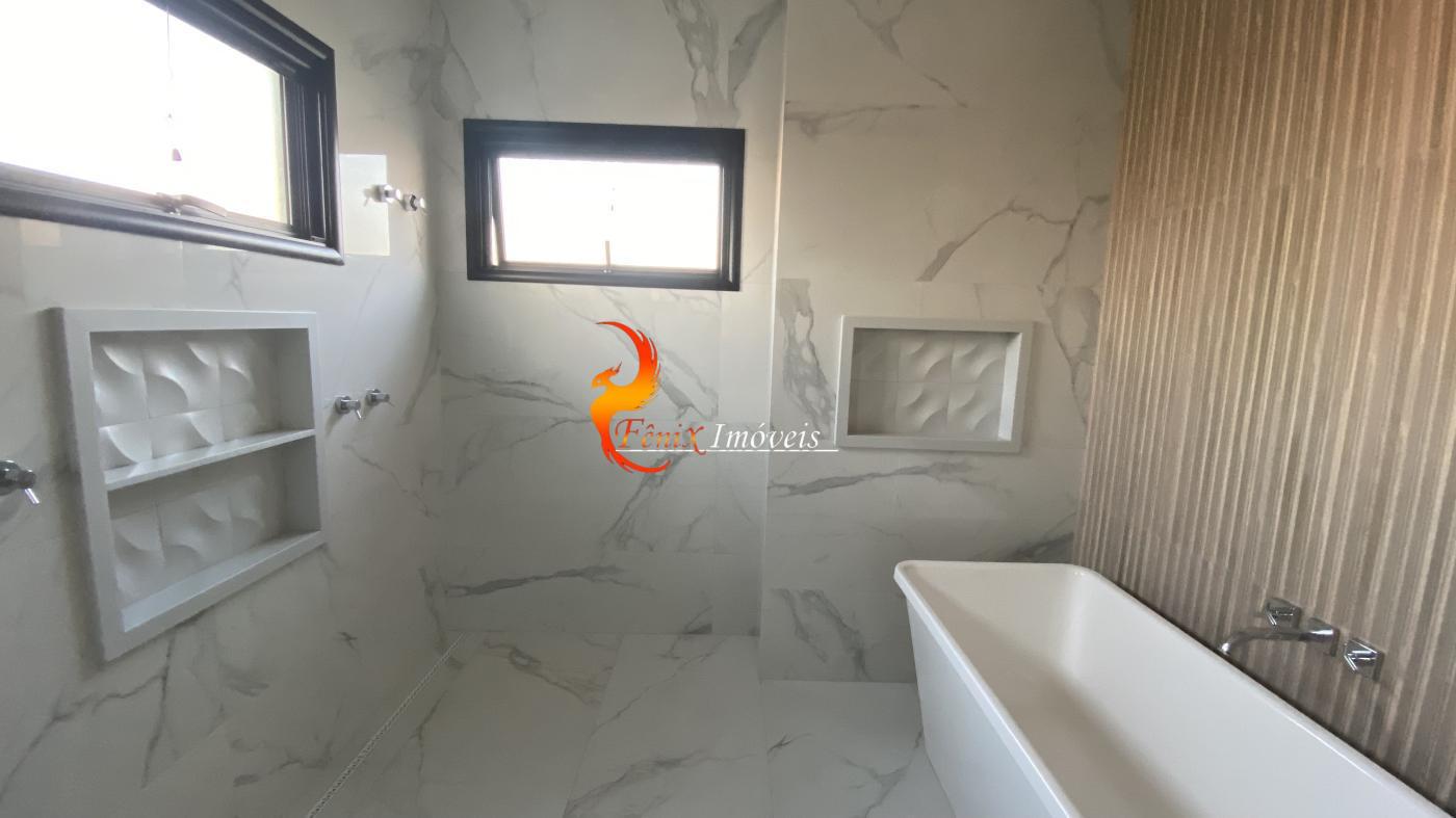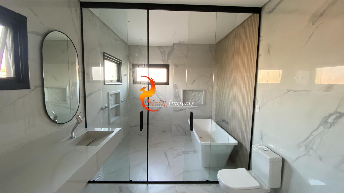 No pavimento superior, o imóvel dispõe de um hall de acesso espaçoso com área para armário, além de quatro suítes completas, todas com persianas blackout motorizadas, closet e sacada privativa. A suíte master é um destaque à parte, oferecendo duas cubas, duas duchas e uma banheira de imersão para total conforto. Há ainda uma copa prática para apoio e todos os banheiros estão prontos, com box e espelhos instalados.
