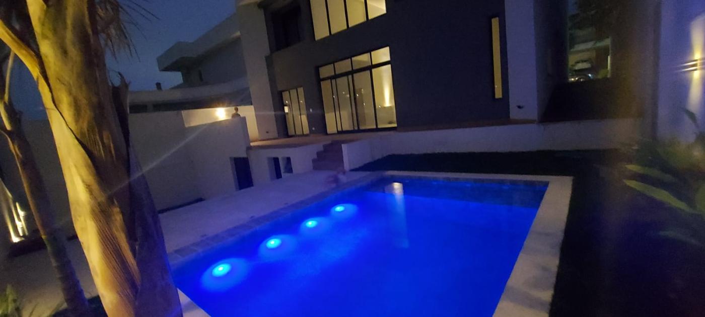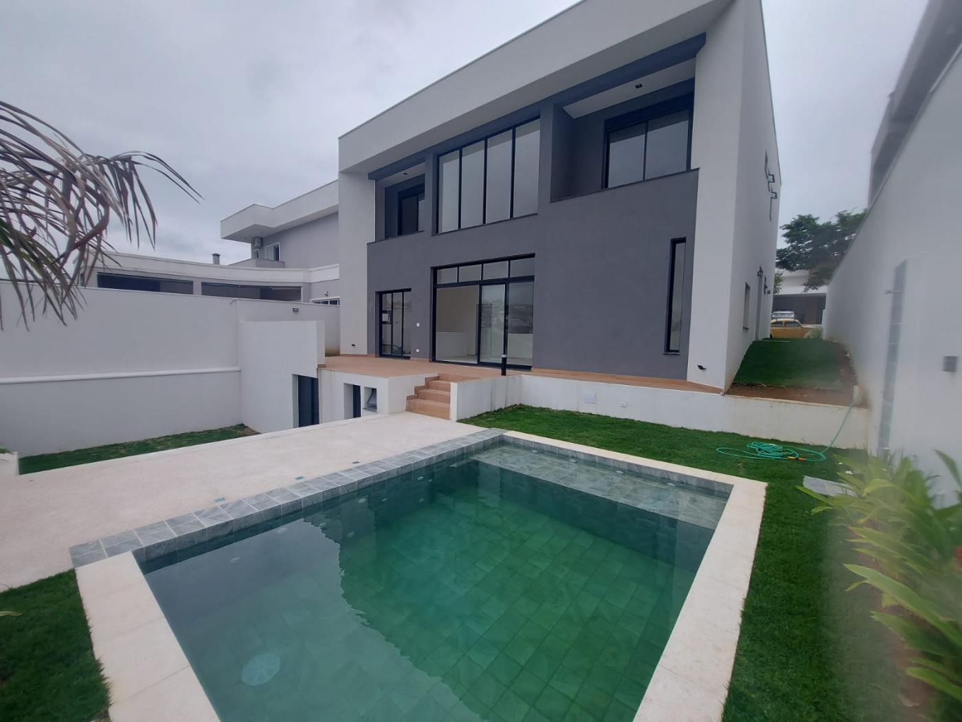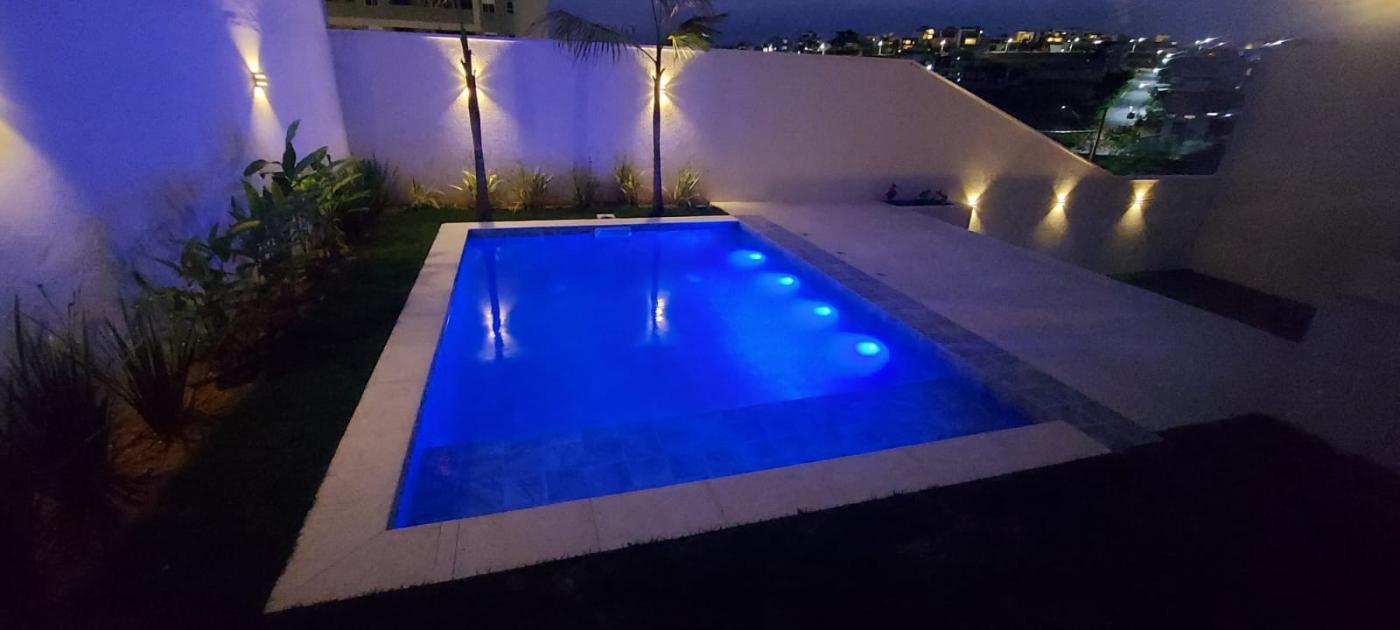 Possui ainda uma área de serviço com despensa ampla e acesso direto à garagem, lavabo com hall de entrada e espaço para chapelaria, além de uma área gourmet preparada para churrasqueira com porcelanato amadeirado. A área externa é um verdadeiro convite ao lazer, com piscina revestida em estilo pedras hijau, iluminação LED colorida, espaço para spa, área gramada de aproximadamente 50m² ideal para recreação, banheiro externo tipo vestiário e ambiente versátil para adega ou ateliê.