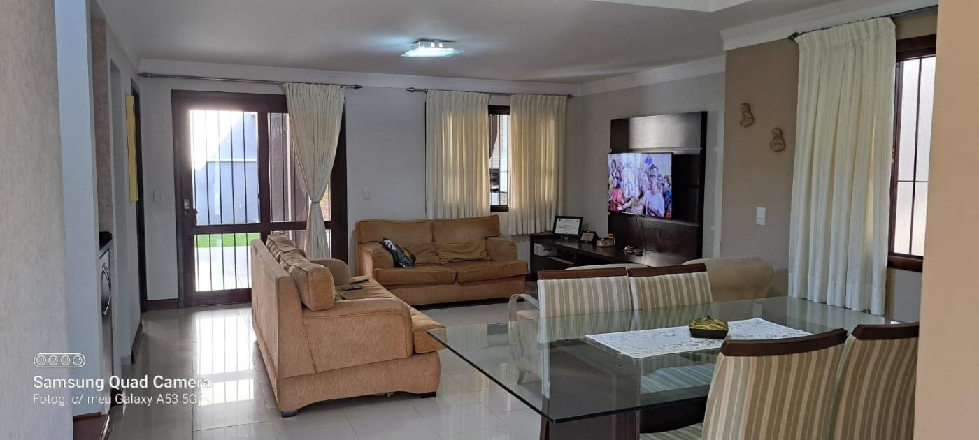 No térreo, a sala para dois ambientes com móveis planejados cria o cenário perfeito para momentos inesquecíveis com amigos e familiares. Um escritório bem iluminado oferece o espaço ideal para quem precisa trabalhar ou estudar em casa. A cozinha é um convite à gastronomia, equipada com móveis planejados e gás encanado para facilitar suas aventuras culinárias. Todo o piso é revestido em porcelanato, garantindo beleza e praticidade ao dia a dia. A área externa não decepciona: uma varanda gourmet completa com churrasqueira, fogão e forno a lenha espera por você para celebrações ao ar livre. O quintal gramado e o jardim são perfeitos para relaxar ou brincar.