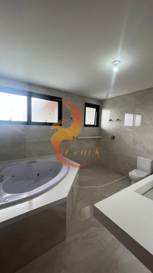 No pavimento térreo, o destaque é a sala em dois ambientes com pé-direito duplo, que transmite amplitude e elegância, integrada à cozinha e à área gourmet. O espaço conta ainda com lavabo sofisticado, escritório com banheiro que pode ser convertido em dormitório térreo, despensa e lavanderia espaçosas, além de três hobby box que oferecem praticidade no armazenamento. Para os momentos de lazer, a área externa reserva uma verdadeira joia: uma piscina de borda infinita, acompanhada de área gourmet com banheiro privativo, tudo emoldurado por detalhes em pedra moledo, que acrescentam charme e requinte ao projeto. A garagem comporta 4 veículos, sendo 2 cobertos.