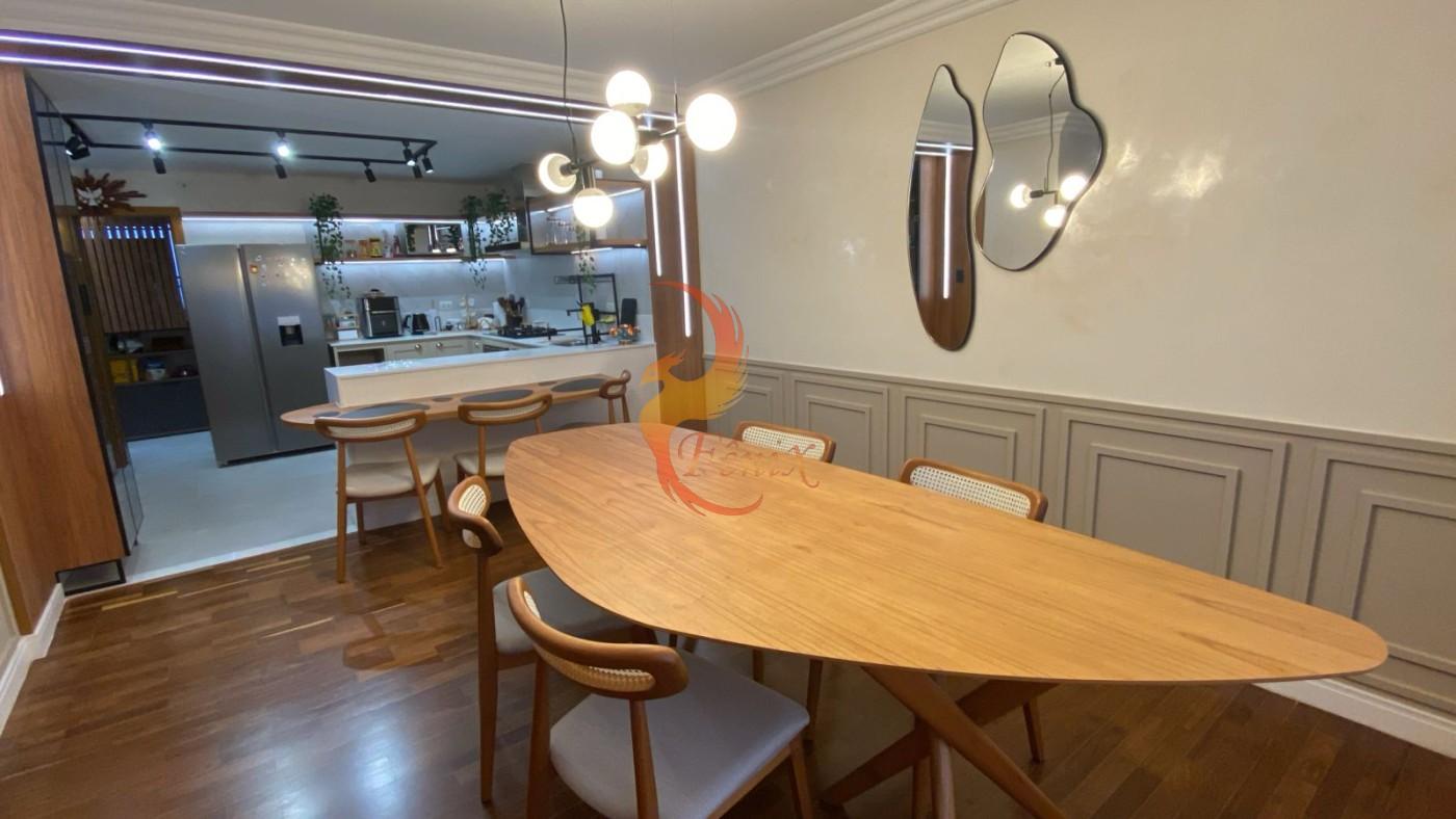 O apartamento foi totalmente reformado e atualizado com acabamentos de alto padrão, unindo elegância, conforto e praticidade. Conta com quatro dormitórios, sendo duas suítes – uma delas com closet –, além de um banheiro social e um lavabo. As salas de estar e de jantar são amplas e convidativas, perfeitas para receber a família e os amigos. A cozinha em conceito aberto é equipada com cooktop, forno, coifa e um charmoso canto alemão para refeições aconchegantes. A área de serviço é funcional e bem ventilada.