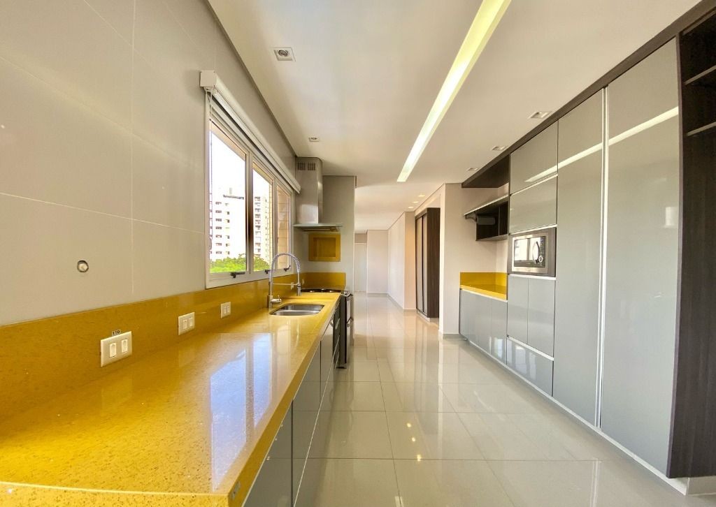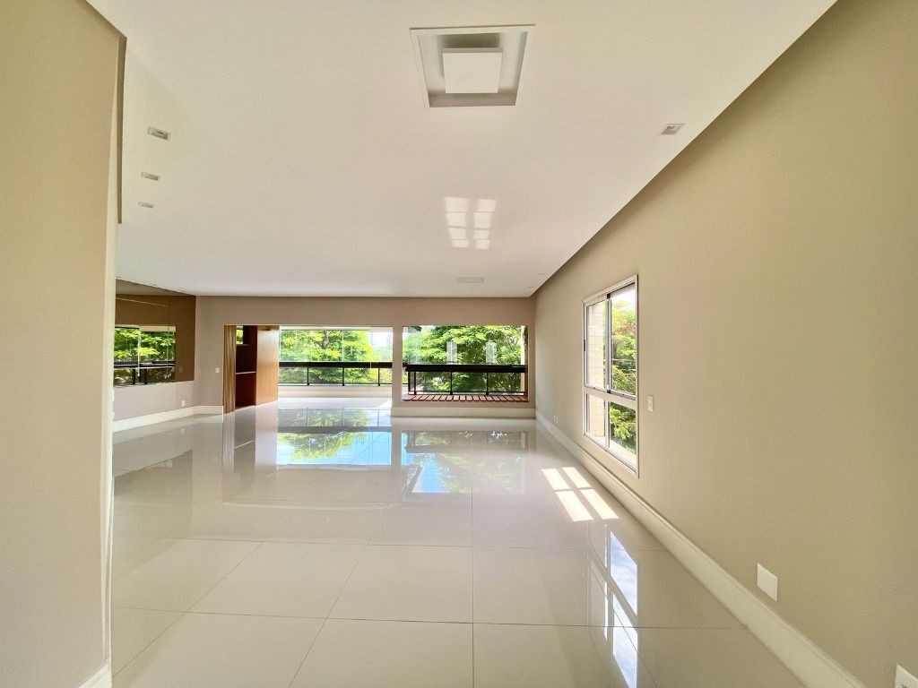 Com hall privativo e um projeto que privilegia o espaço e a luminosidade, o imóvel conta com lavabo, salas amplas de estar, jantar e TV, além de uma varanda gourmet com churrasqueira e uma vista encantadora. A cozinha com copa é espaçosa e funcional, integrada à área de serviço e saleta de apoio, garantindo praticidade e conforto.