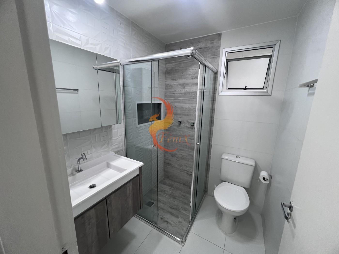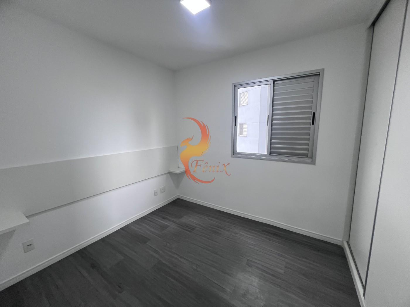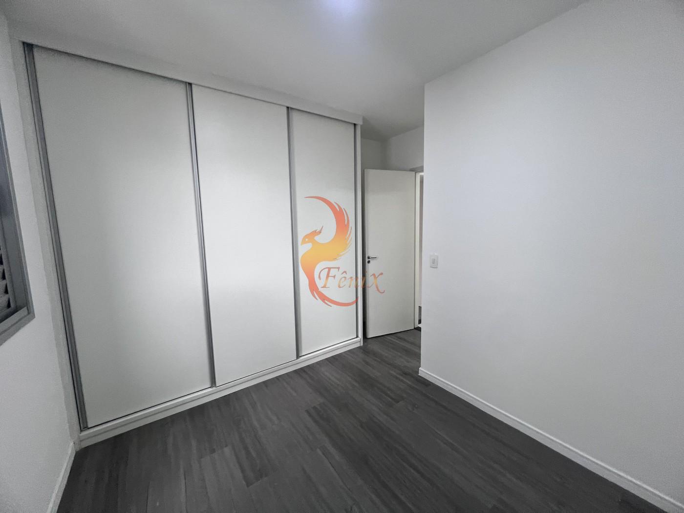O apartamento conta com piso em porcelanato, armários planejados nos quartos e na cozinha, e um design moderno e funcional.