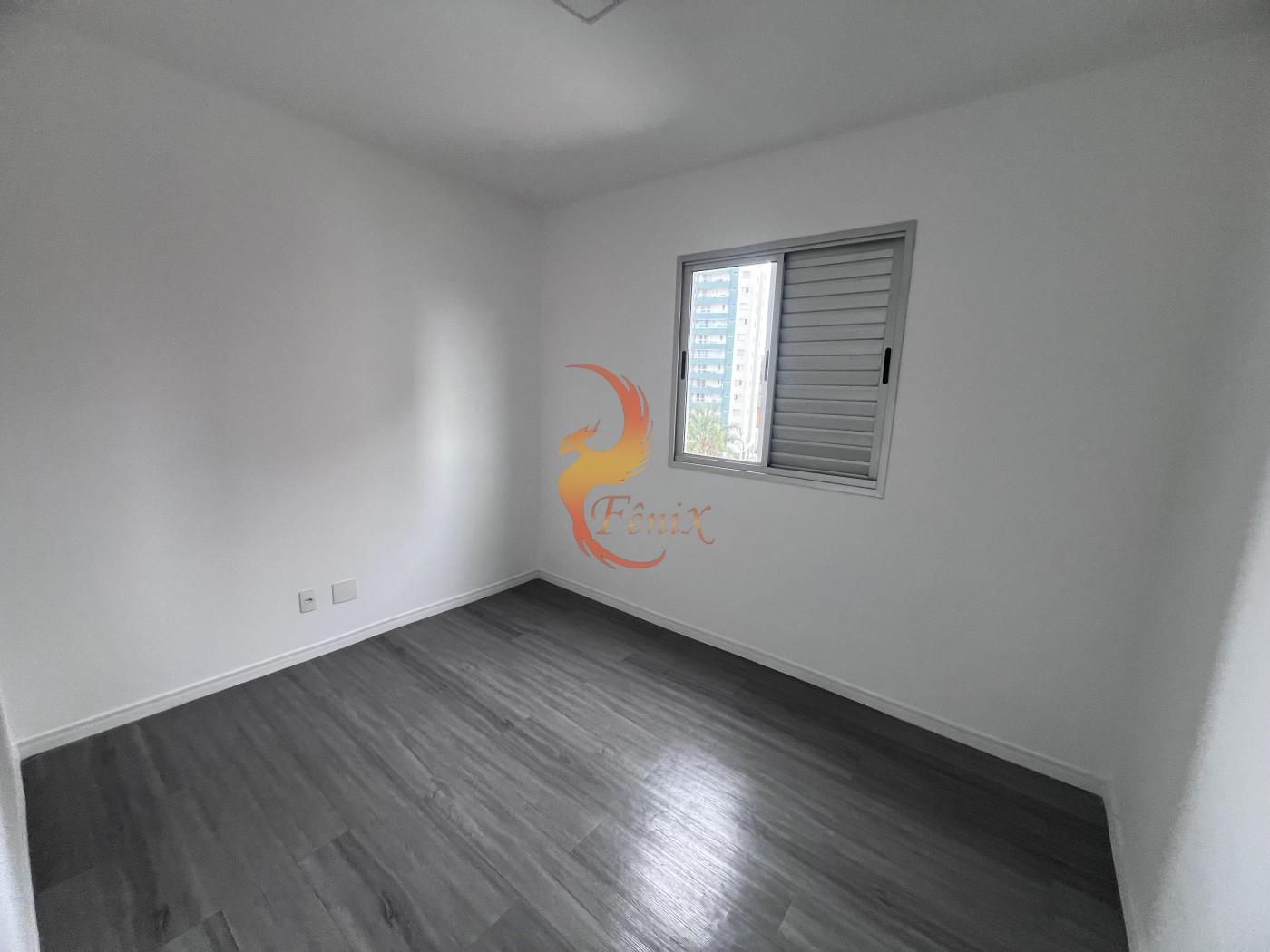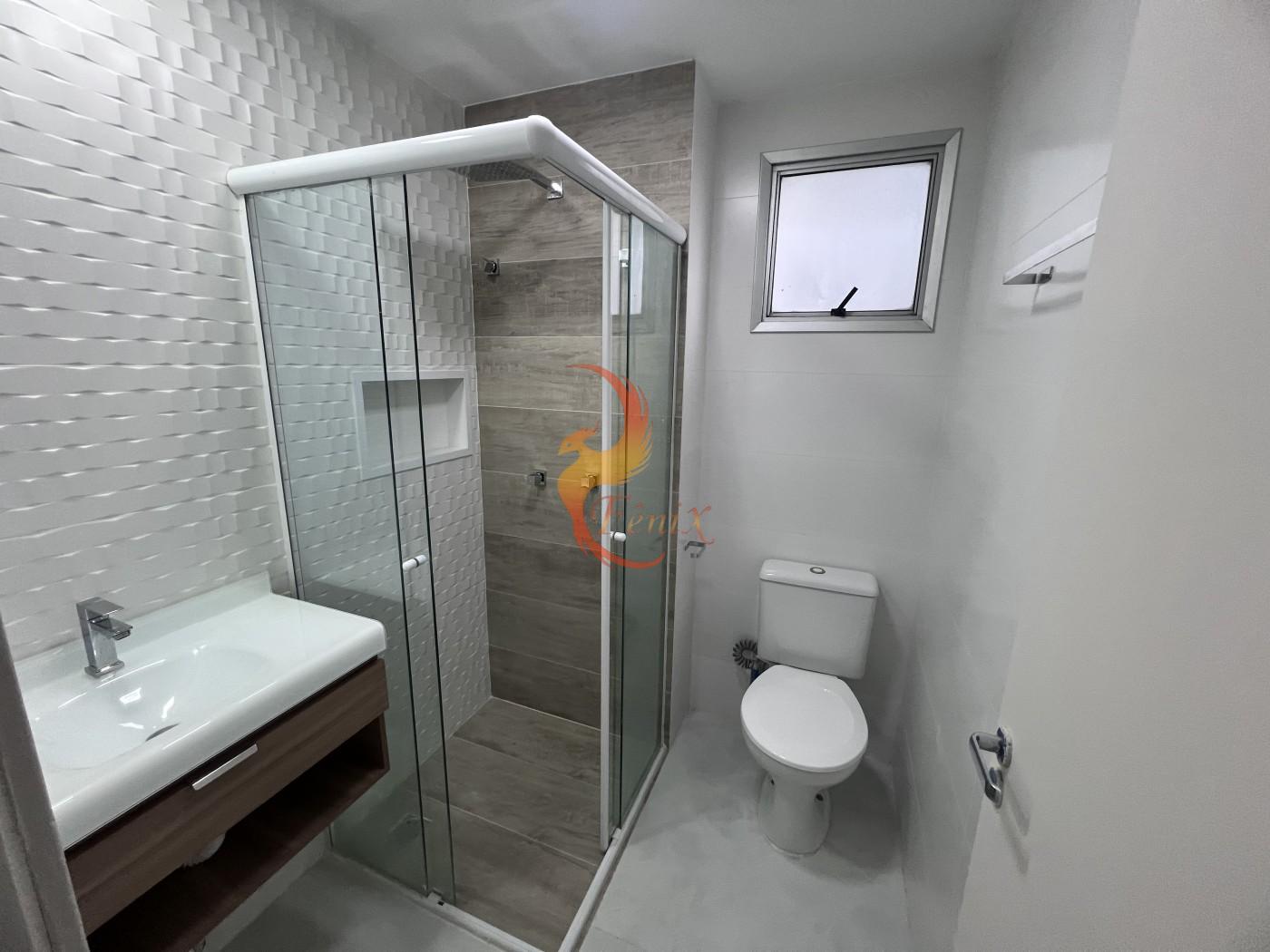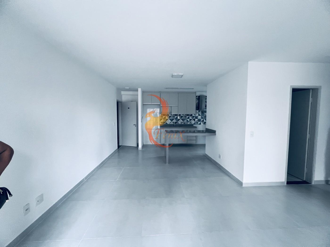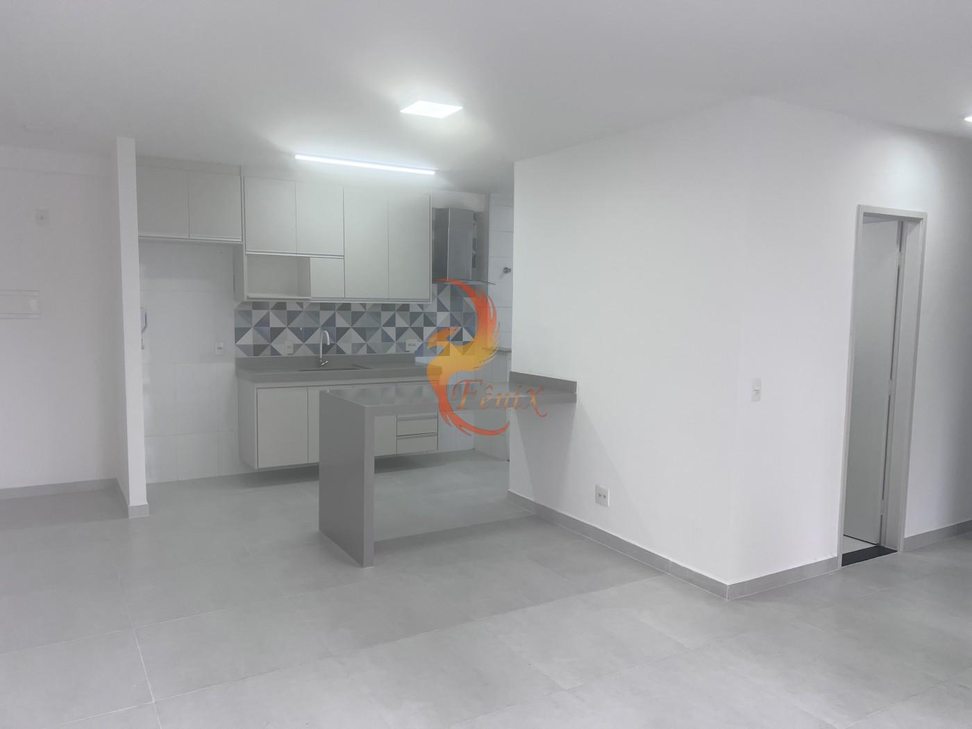 O apartamento conta com piso em porcelanato, armários planejados nos quartos e na cozinha, e um design moderno e funcional.