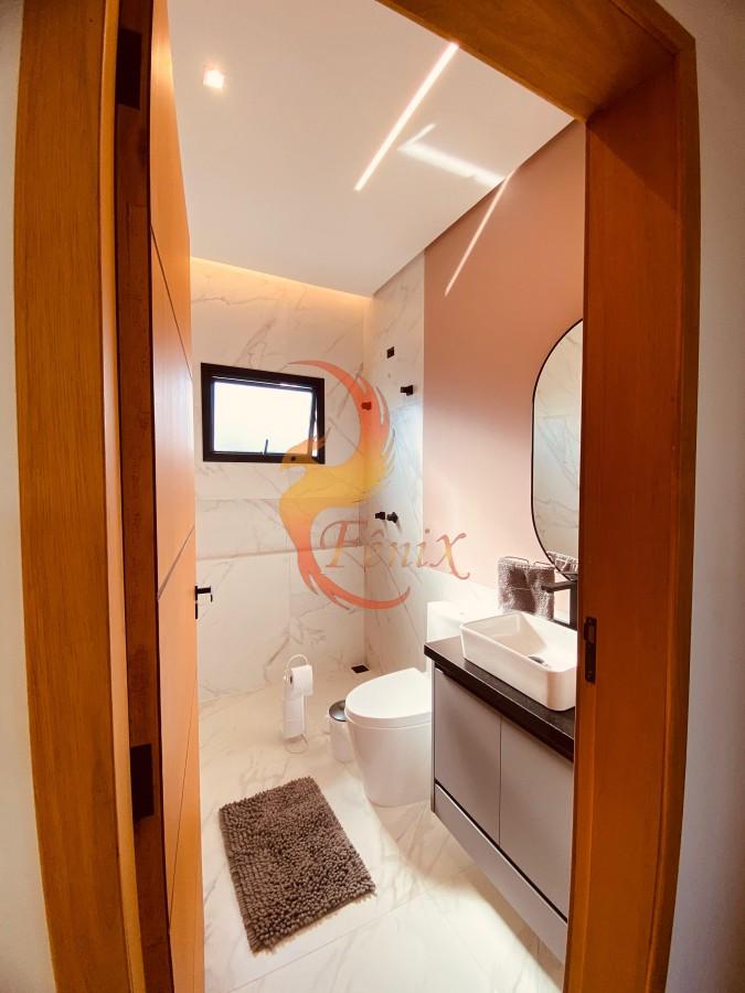 A casa possui móveis planejados em diversos ambientes, incluindo cozinha, área gourmet, banheiros, closet e área de serviço, garantindo excelente aproveitamento de espaço e um acabamento de alto padrão.