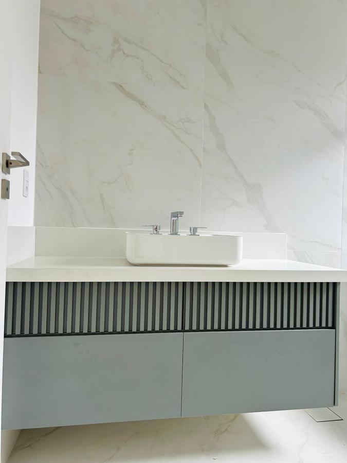 Os acabamentos sofisticados se harmonizam aos móveis planejados, valorizando cada espaço: a sala de estar integra-se à copa e à cozinha – equipada com despensa – ideal para receber amigos; já o escritório, no pavimento térreo, proporciona ambiente perfeito para home office. A área de serviço otimiza o dia a dia, enquanto o condomínio oferece portaria 24 horas e segurança perimetral, garantem infraestrutura premium. Nas proximidades, você encontra bares, restaurantes, farmácias, escolas, shopping centers e supermercados, tudo a poucos minutos.