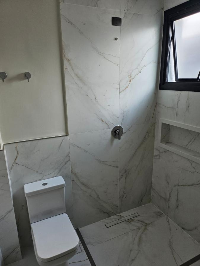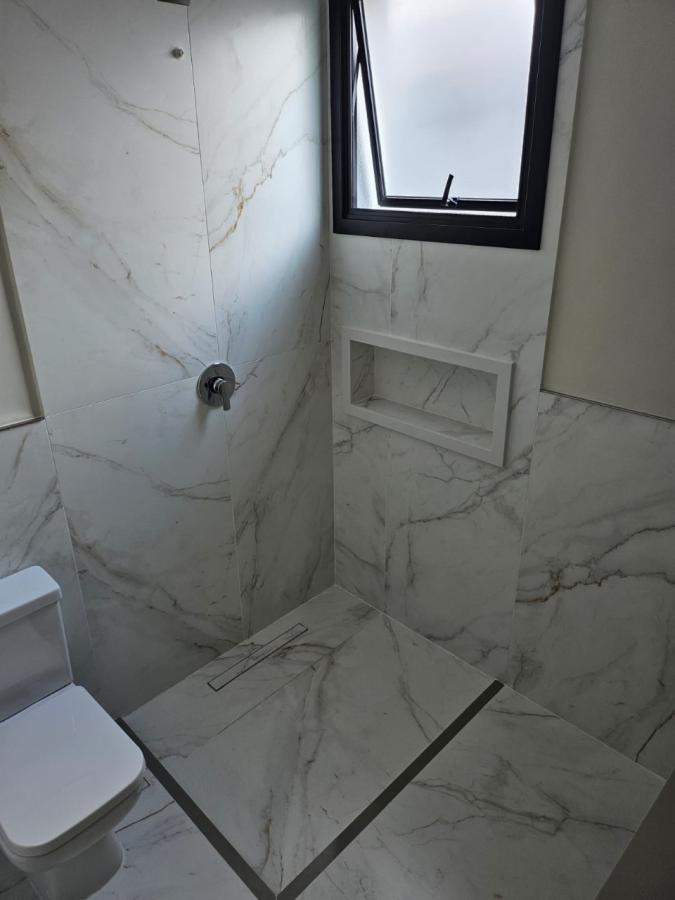 - Porcelanato 84x84 cm na sala, área gourmet e garagem.