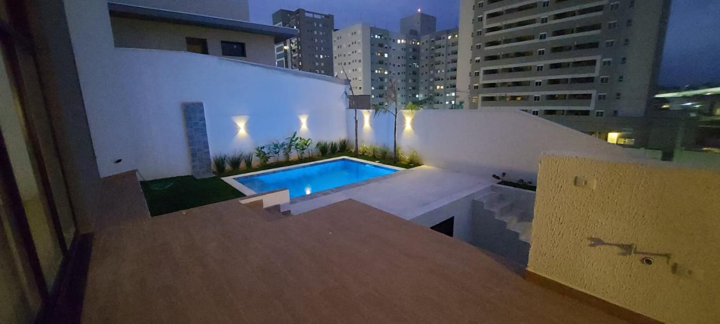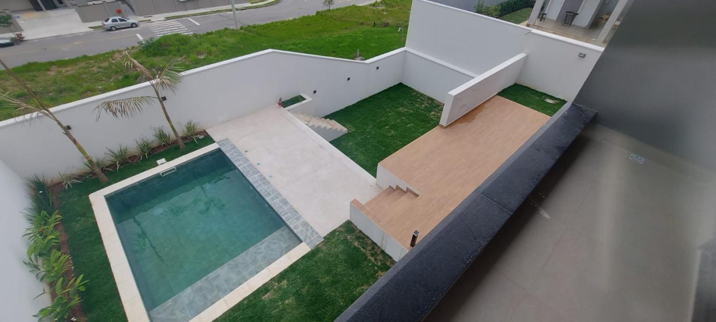 Possui ainda uma área de serviço com despensa ampla e acesso direto à garagem, lavabo com hall de entrada e espaço para chapelaria, além de uma área gourmet preparada para churrasqueira com porcelanato amadeirado. A área externa é um verdadeiro convite ao lazer, com piscina revestida em estilo pedras hijau, iluminação LED colorida, espaço para spa, área gramada de aproximadamente 50m² ideal para recreação, banheiro externo tipo vestiário e ambiente versátil para adega ou ateliê.