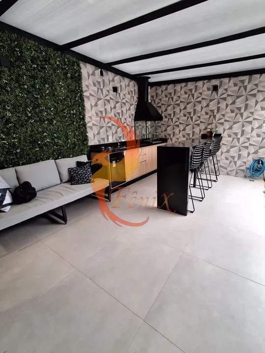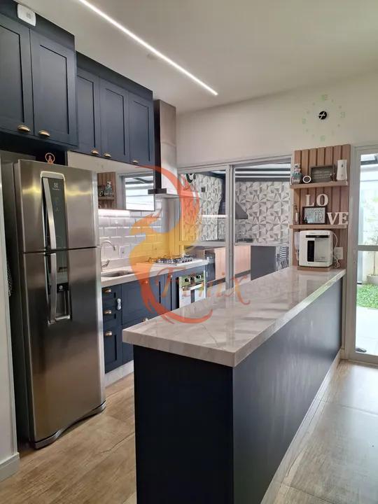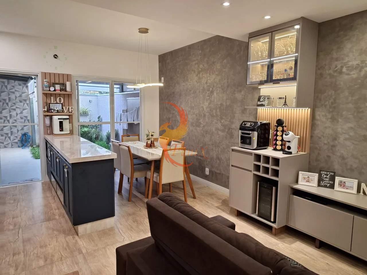 Excelente Sobrado moderno e bem localizado no Urbanova, com destaque para sua área gourmet completa e ambientes climatizados. O imóvel conta com 03 dormitórios com ar-condicionado, sendo 02 com armários planejados, além de uma suíte, banheiro social e lavabo. A sala e a cozinha são integradas, com móveis planejados de alta qualidade. A cozinha possui balcão de mármore branco e cooktop embutido, agregando praticidade e elegância ao espaço.