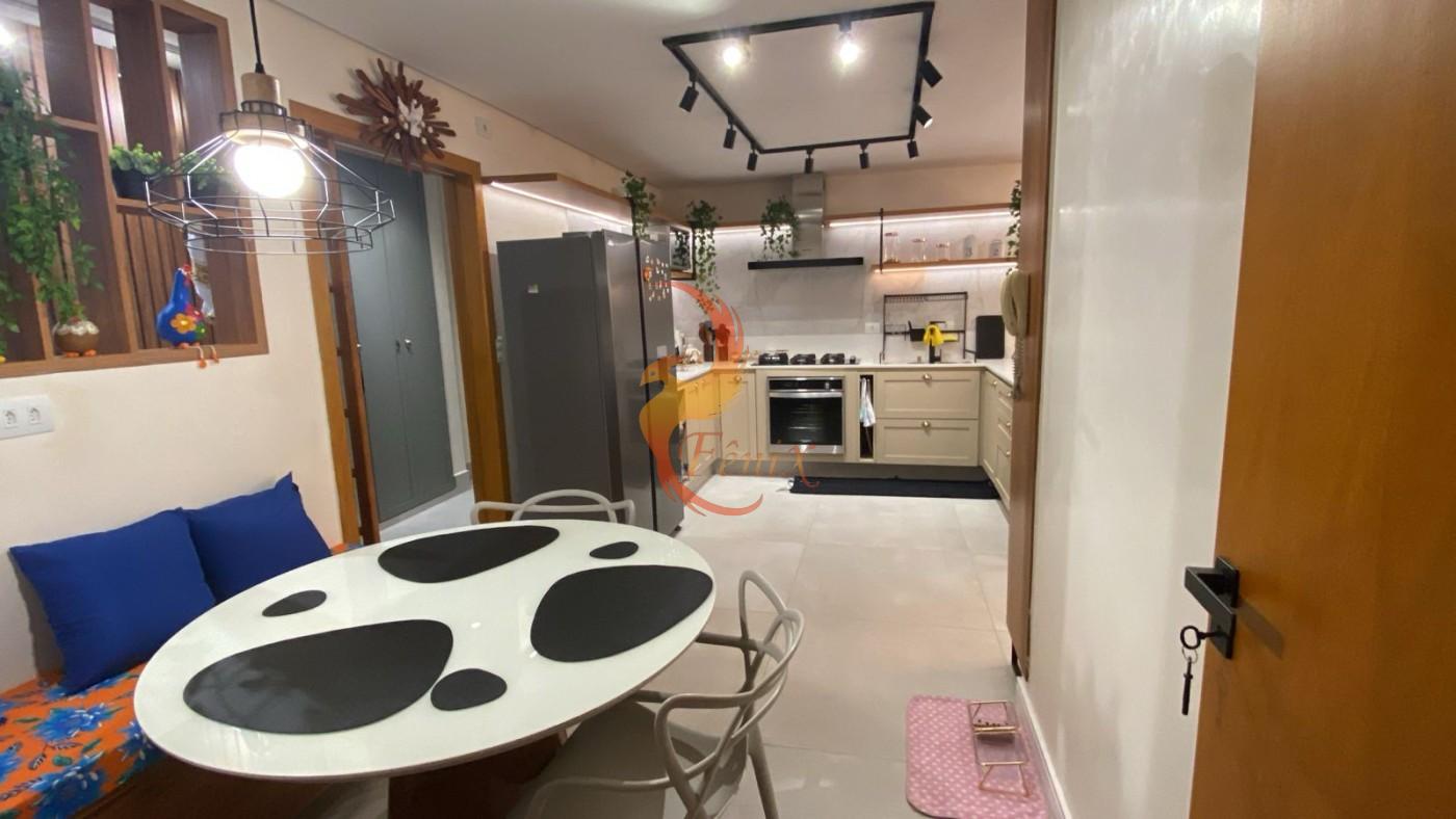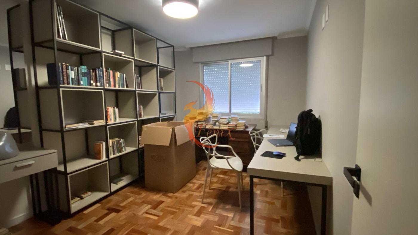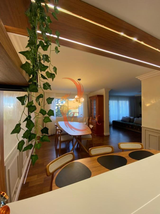 O apartamento foi totalmente reformado e atualizado com acabamentos de alto padrão, unindo elegância, conforto e praticidade. Conta com quatro dormitórios, sendo duas suítes – uma delas com closet –, além de um banheiro social e um lavabo. As salas de estar e de jantar são amplas e convidativas, perfeitas para receber a família e os amigos. A cozinha em conceito aberto é equipada com cooktop, forno, coifa e um charmoso canto alemão para refeições aconchegantes. A área de serviço é funcional e bem ventilada.