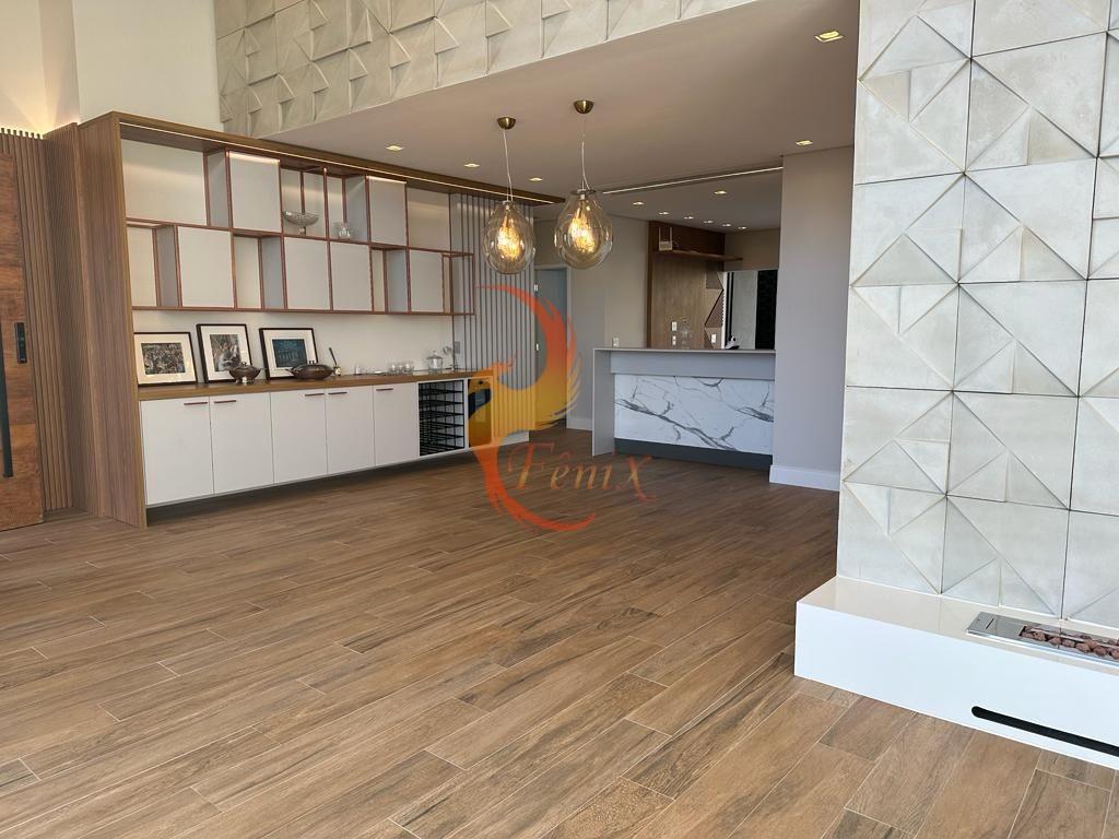 O projeto privilegia a integração dos ambientes: a cozinha gourmet é um dos grandes destaques, equipada com churrasqueira a gás, duas coifas, cooktop, forno elétrico, lava-louças, balcão e armários planejados, tornando-se o espaço ideal para receber familiares e amigos. A sala de estar, com pé-direito de 5 metros, lareira a gás e decoração em 3D, cria um ambiente acolhedor e sofisticado.