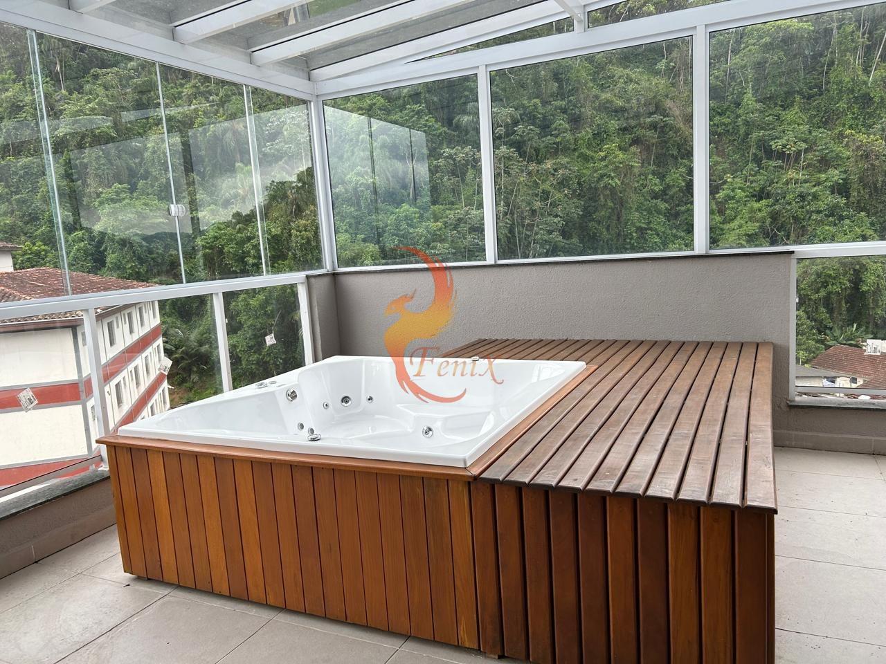 O grande diferencial é o solarium gourmet privativo com churrasqueira e spa com deck de madeira, coberto com estrutura de alumínio e vidros laminados e refletivos, além de fechamentos em vidro temperado — um espaço exclusivo para lazer, valorizando ainda mais o potencial de locação.