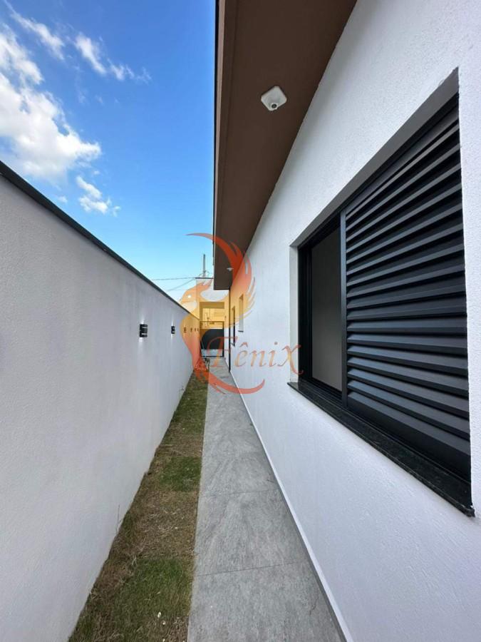 Na área externa, um corredor lateral conduz ao quintal com espaço gourmet e churrasqueira, ideal para momentos de lazer, além de banheiro externo e área de serviço funcional.